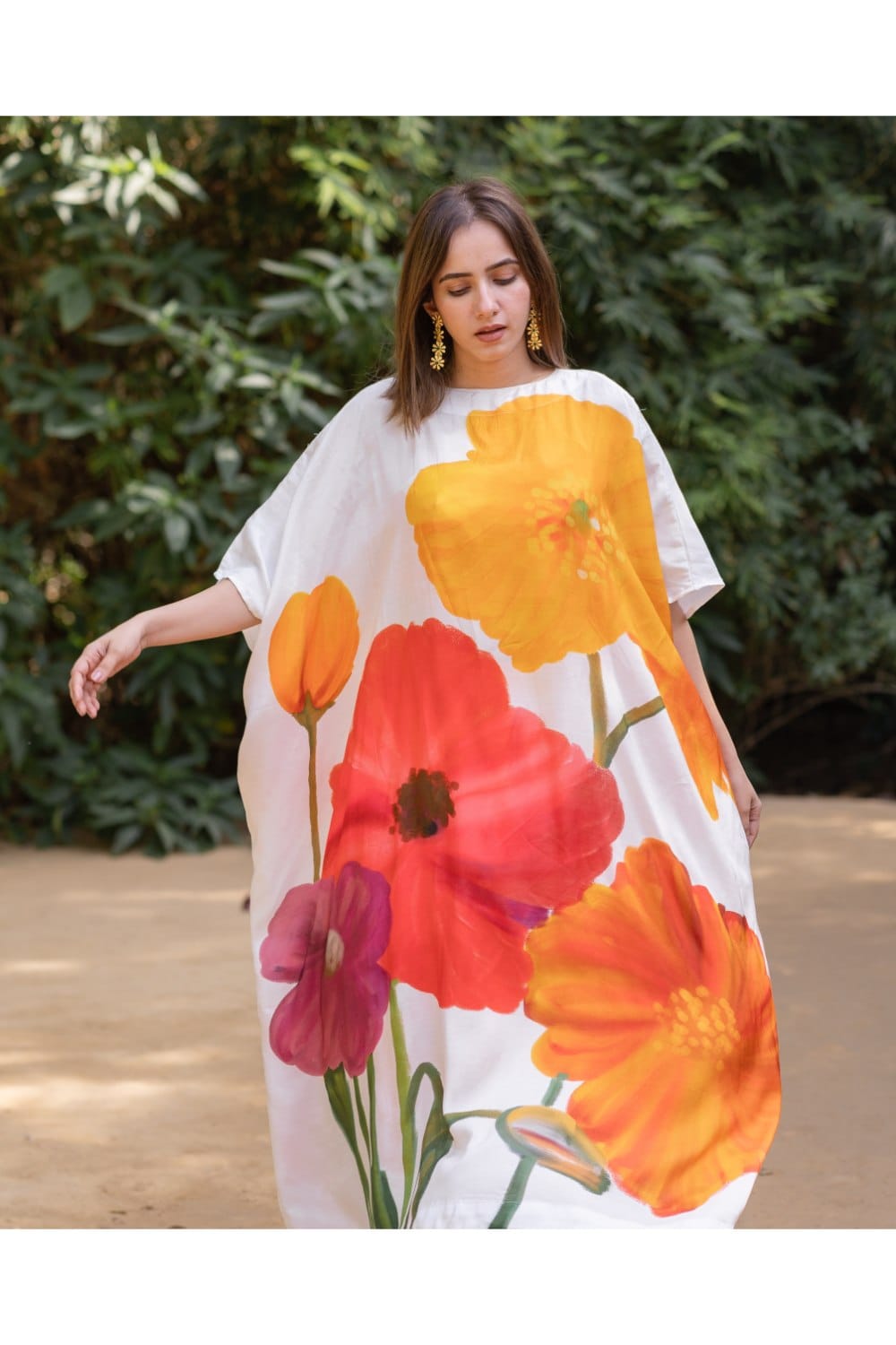 1.THIS SET IS KAFTAAN 2.WHITE COLOR KAFTAAN A.NECKLINE - ROUND NECK B.SLEEVES - HALF SLEEVES