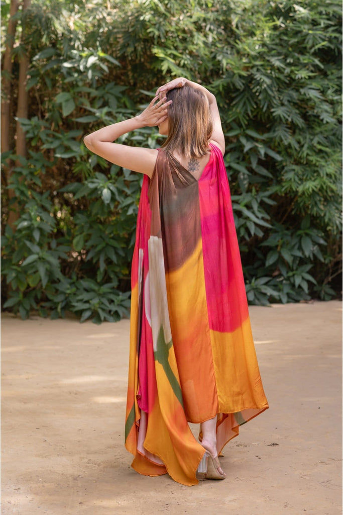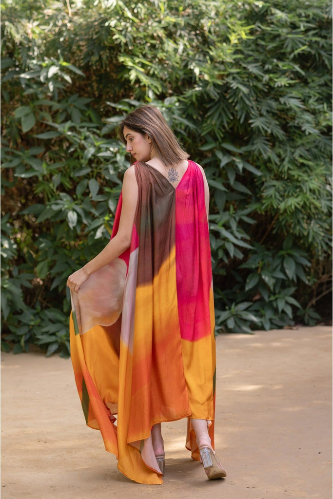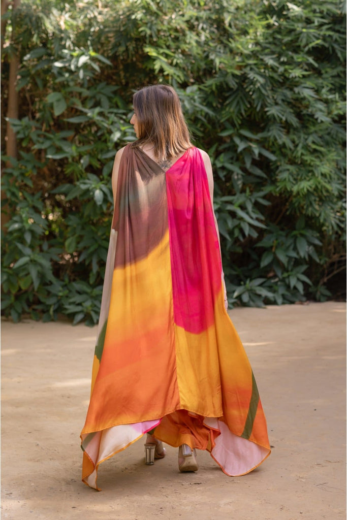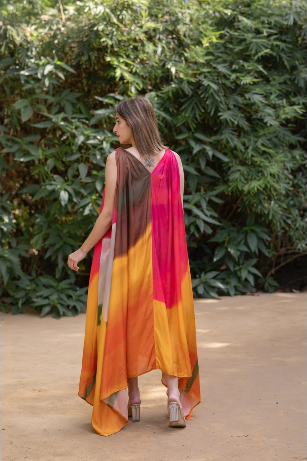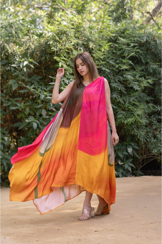 1. THIS SET INCLUDES DRESS ONLY 2. ORANGE COLOR DRESS . A.NECKLINE -V-NEECK B.SLEEVES - SLEEVELESS