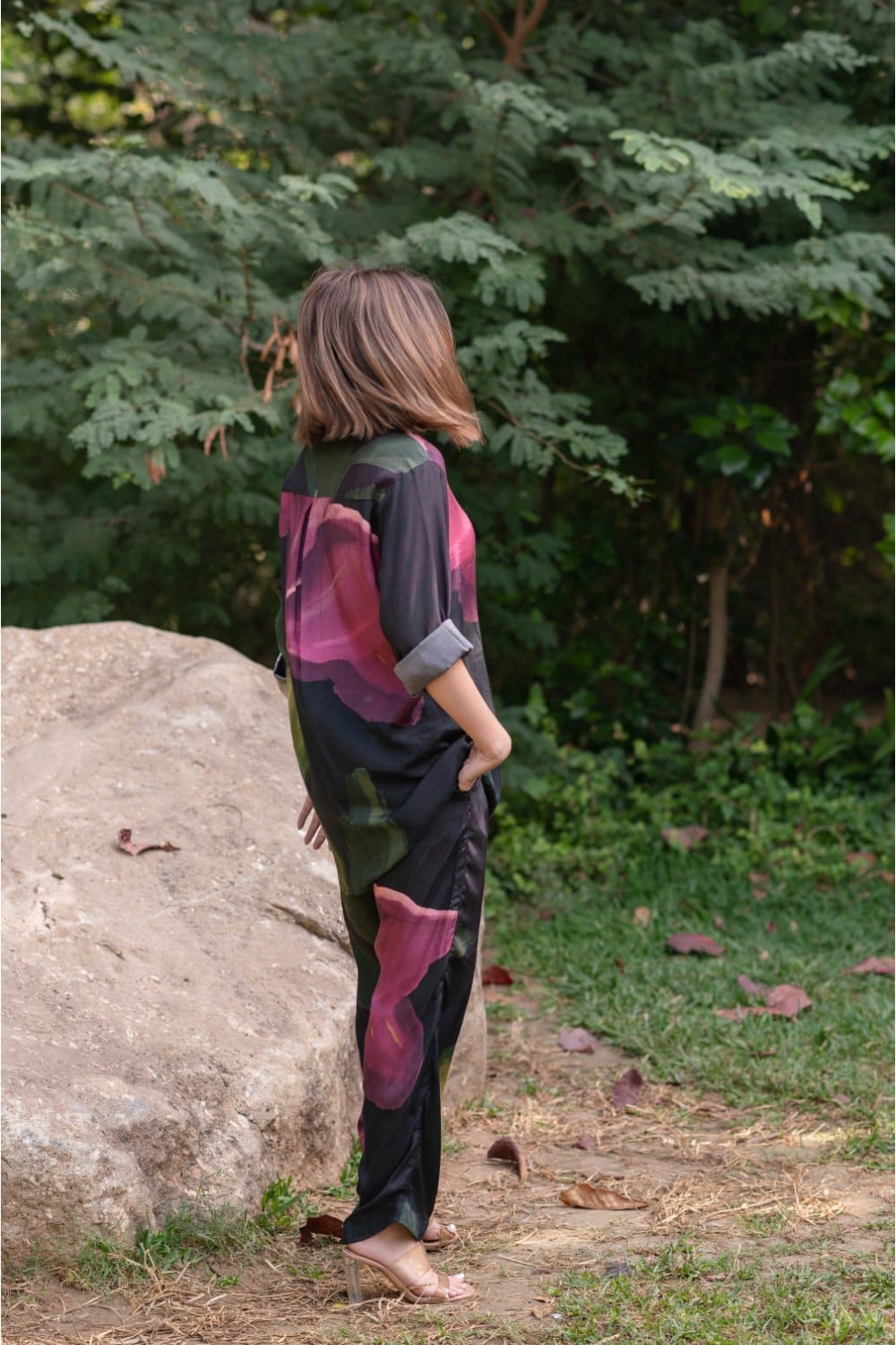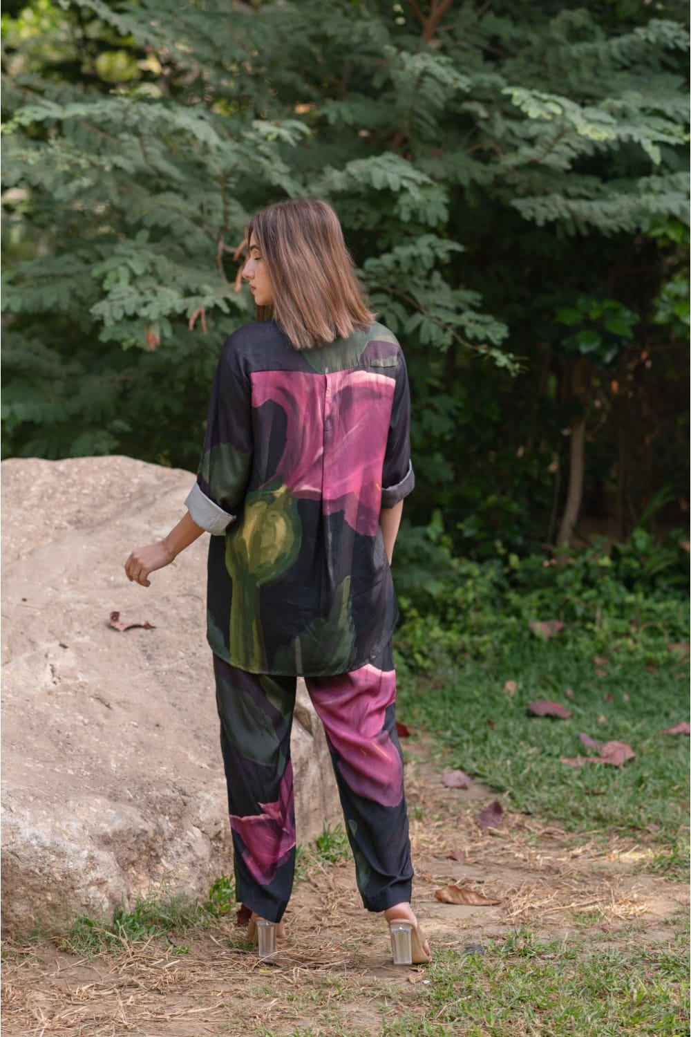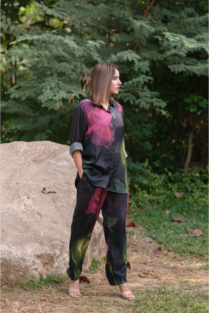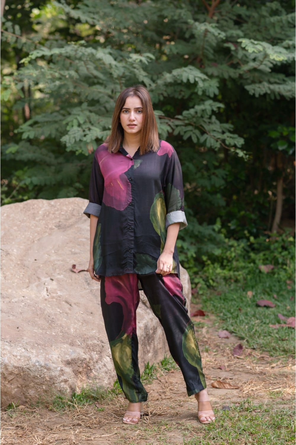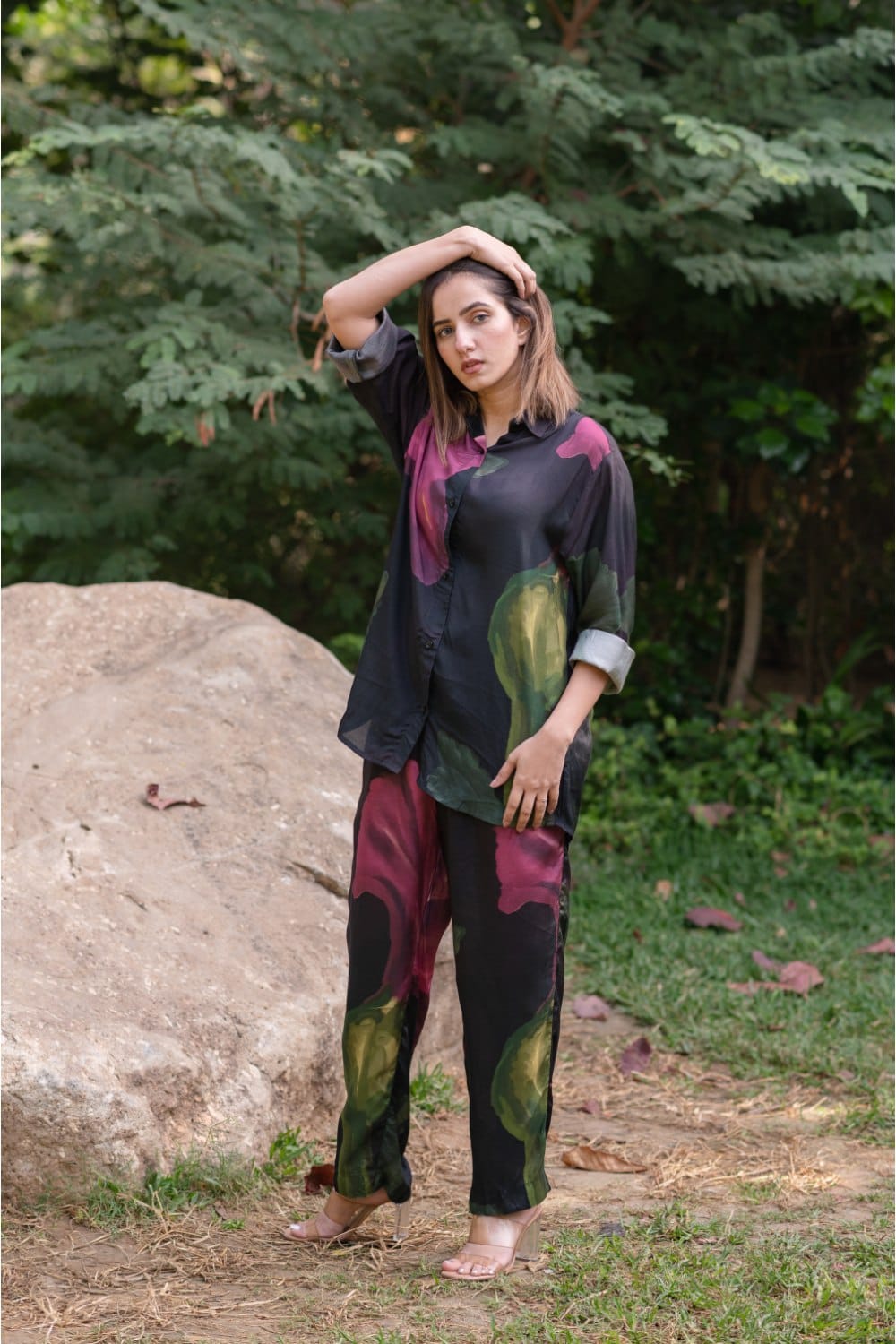 1. THIS SET INCLUDES SHIRT AND PANTS. 2. BLACK COLOR SHIRT WITH PANTS. . A.NECKLINE - V-NECK B.SLEEVES - FULL SLEEVES 3. PANT - BLACK