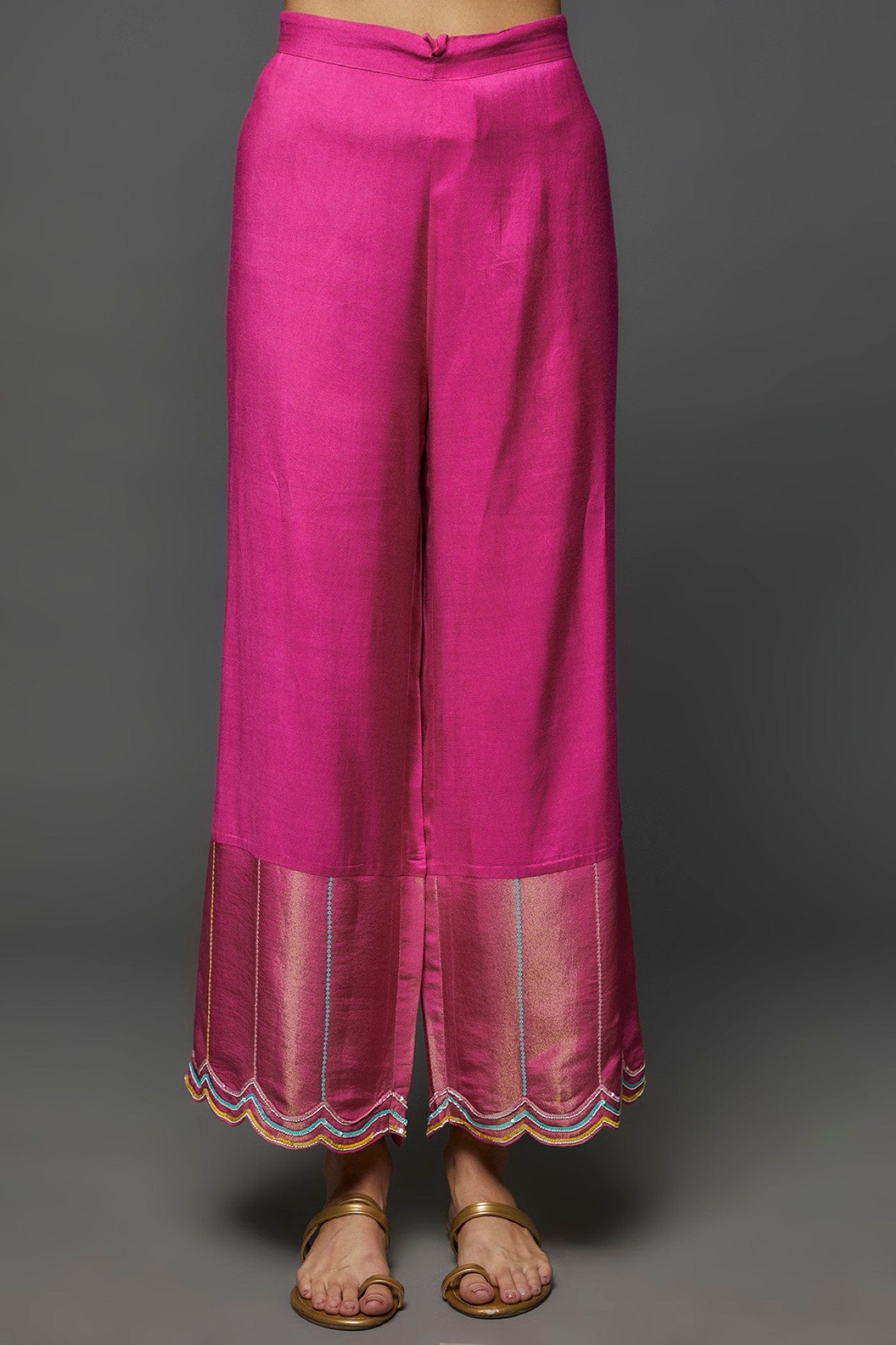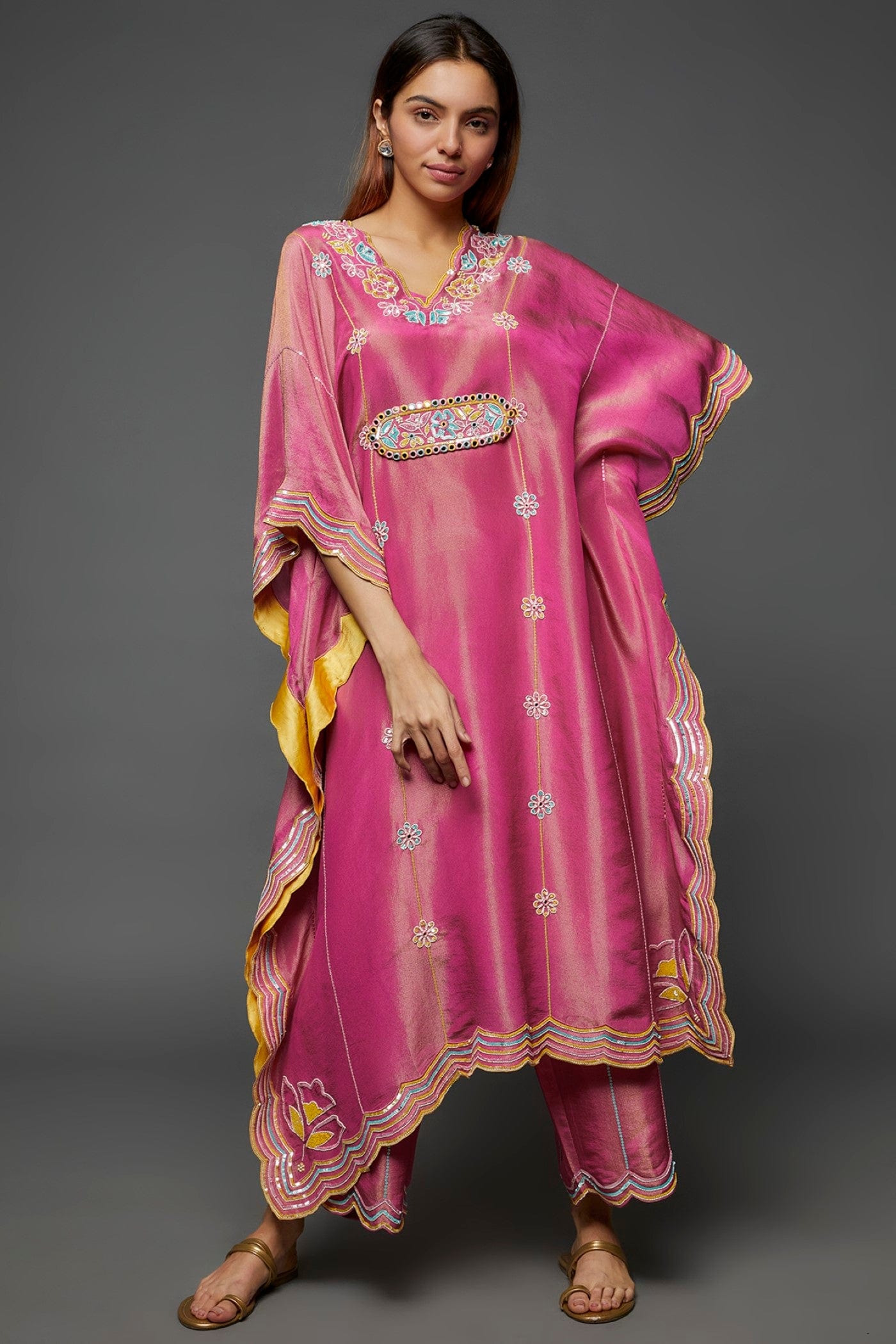Pink Silk Blend Hand Embroidered Kaftan Set
