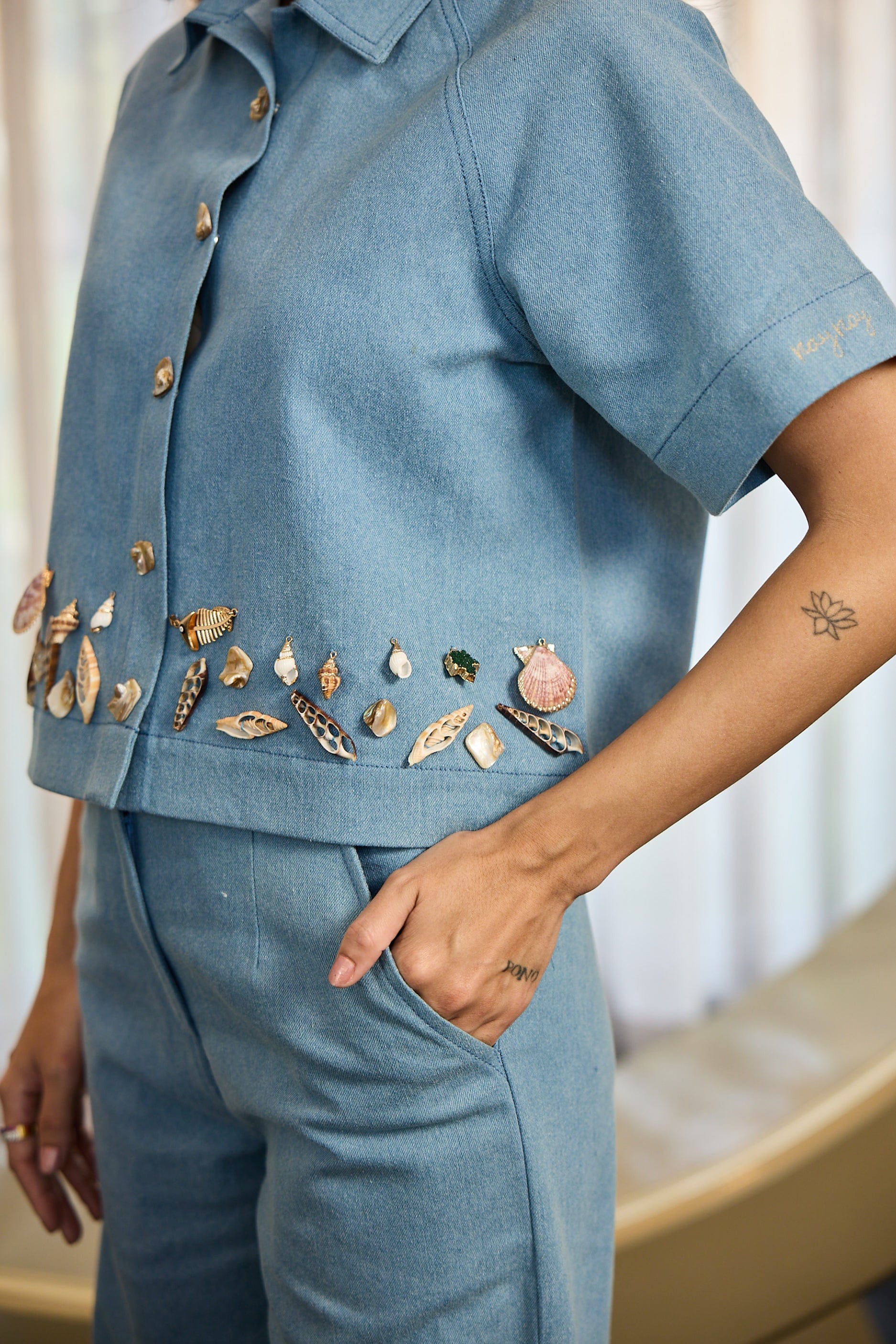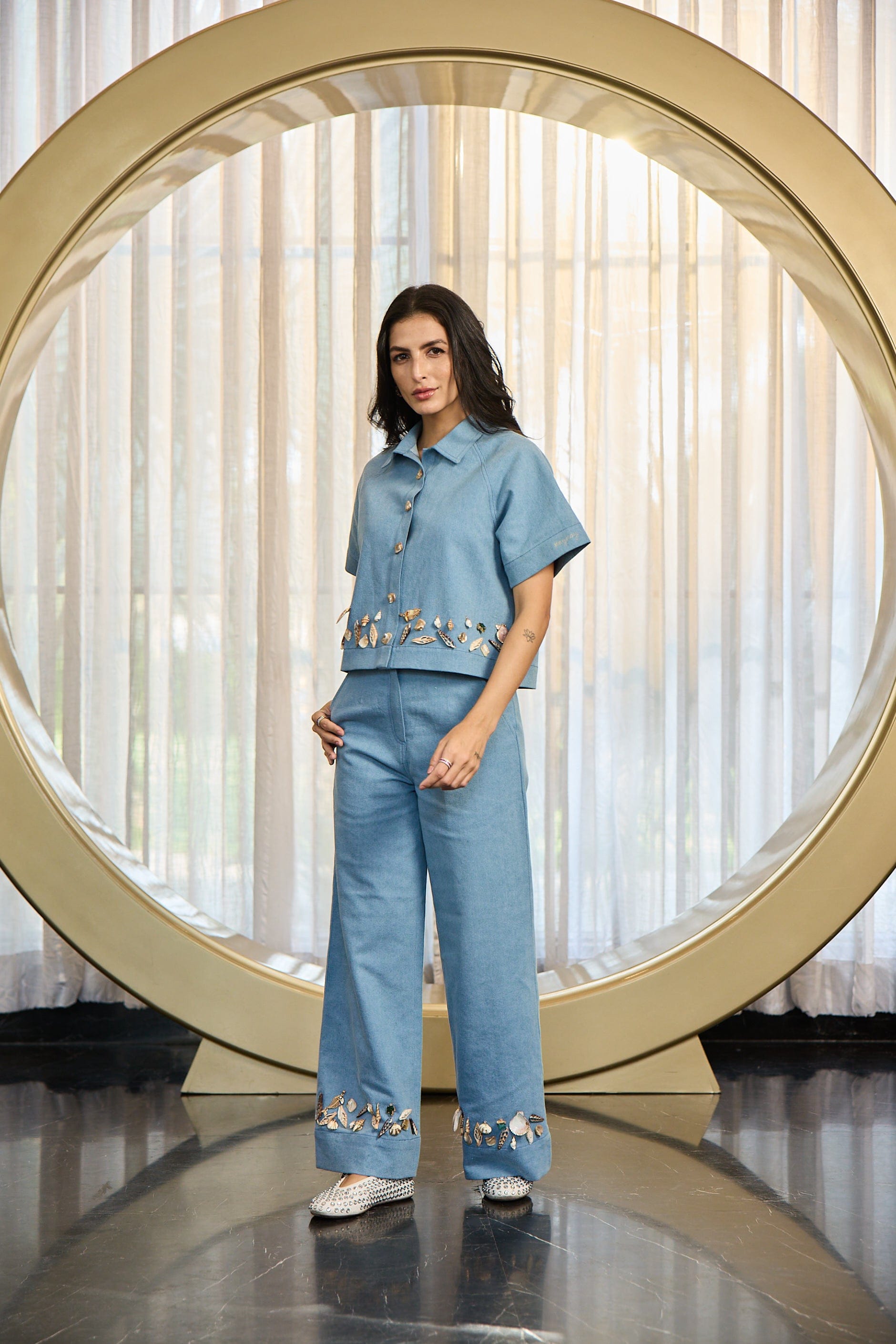 Classic blue denim meets modern tailoring in this versatile set, perfect for effortless style from day to night.