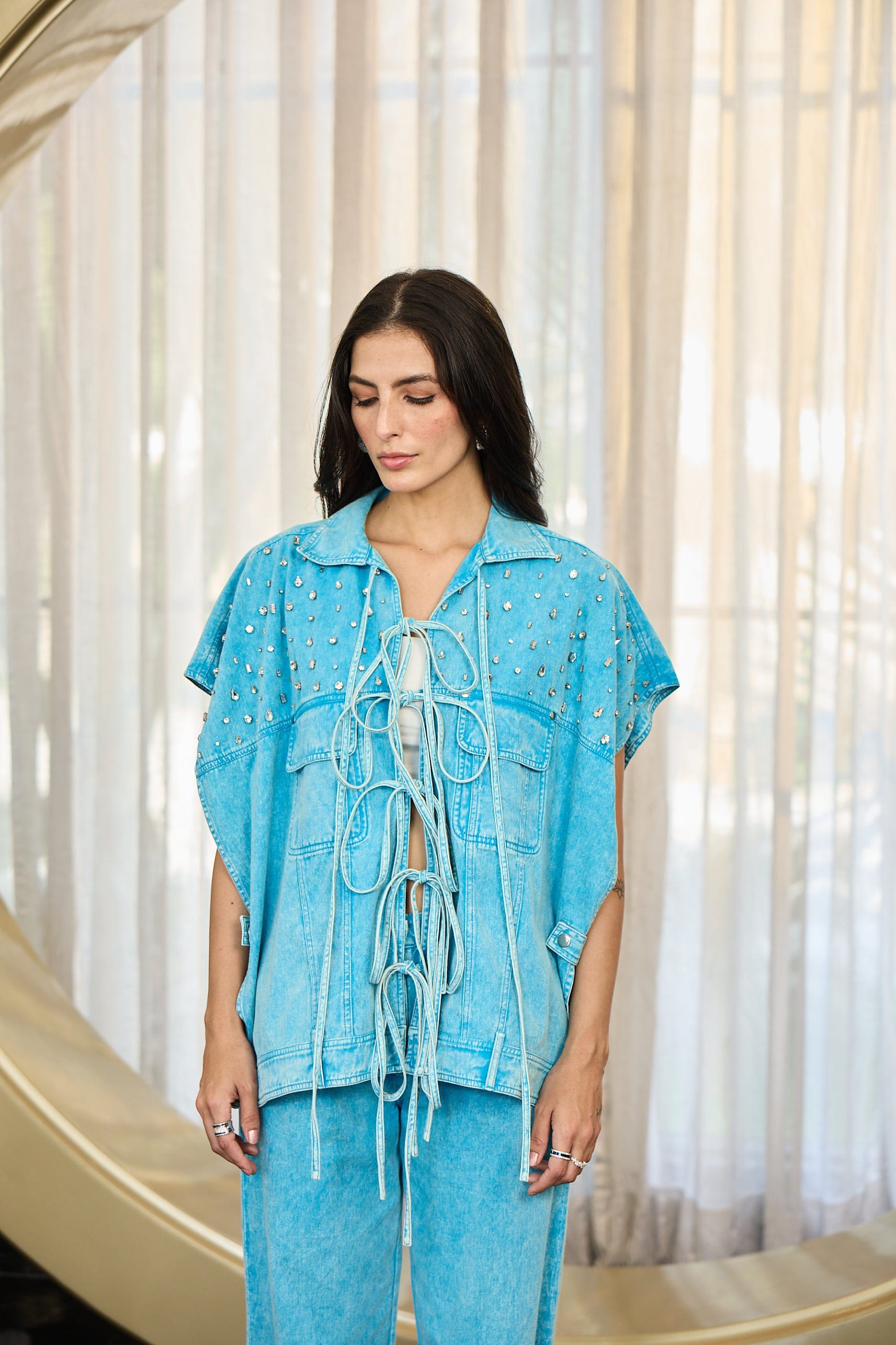 Fresh and breezy, this sky blue denim coord set brings a playful twist to everyday dressing. The soft hue and relaxed fit create an effortlessly chic, all-day look.