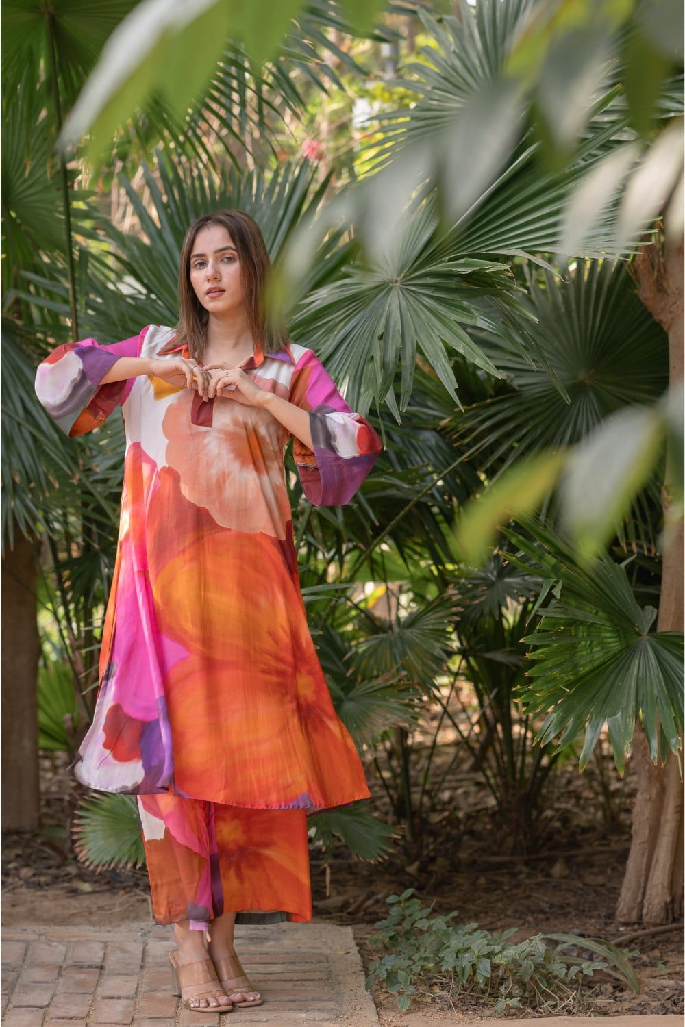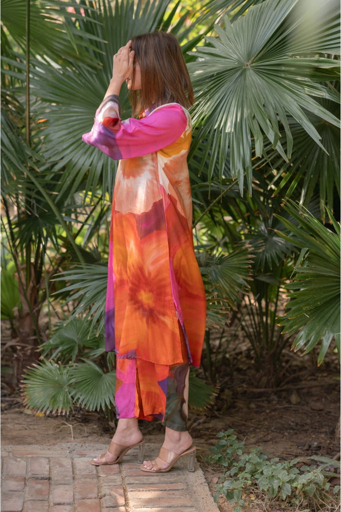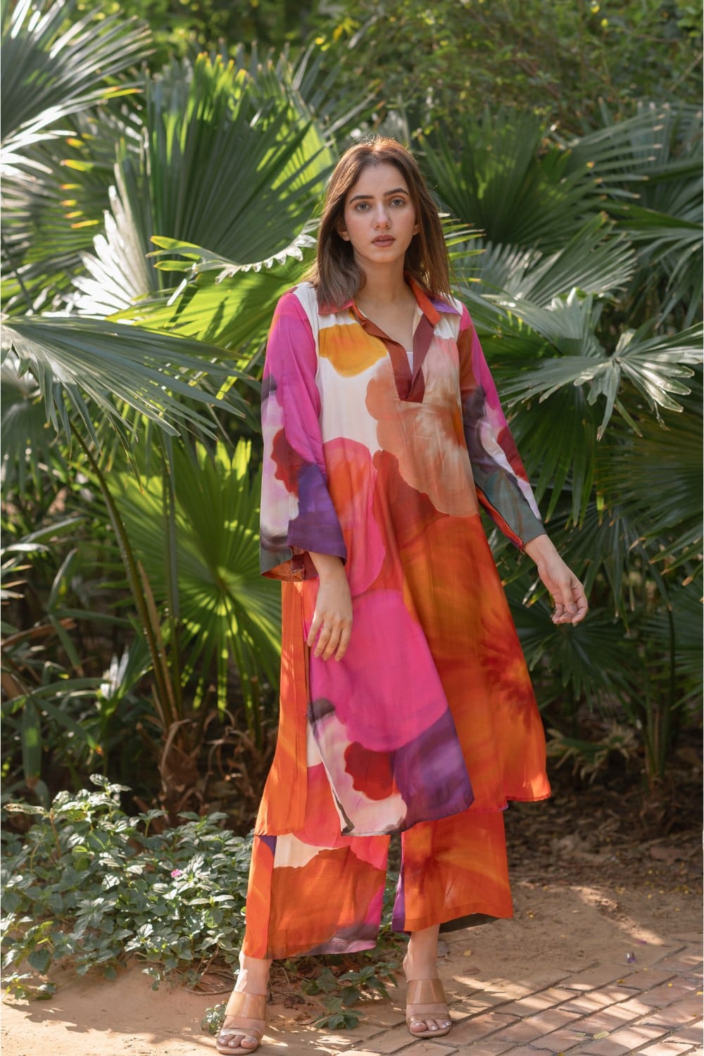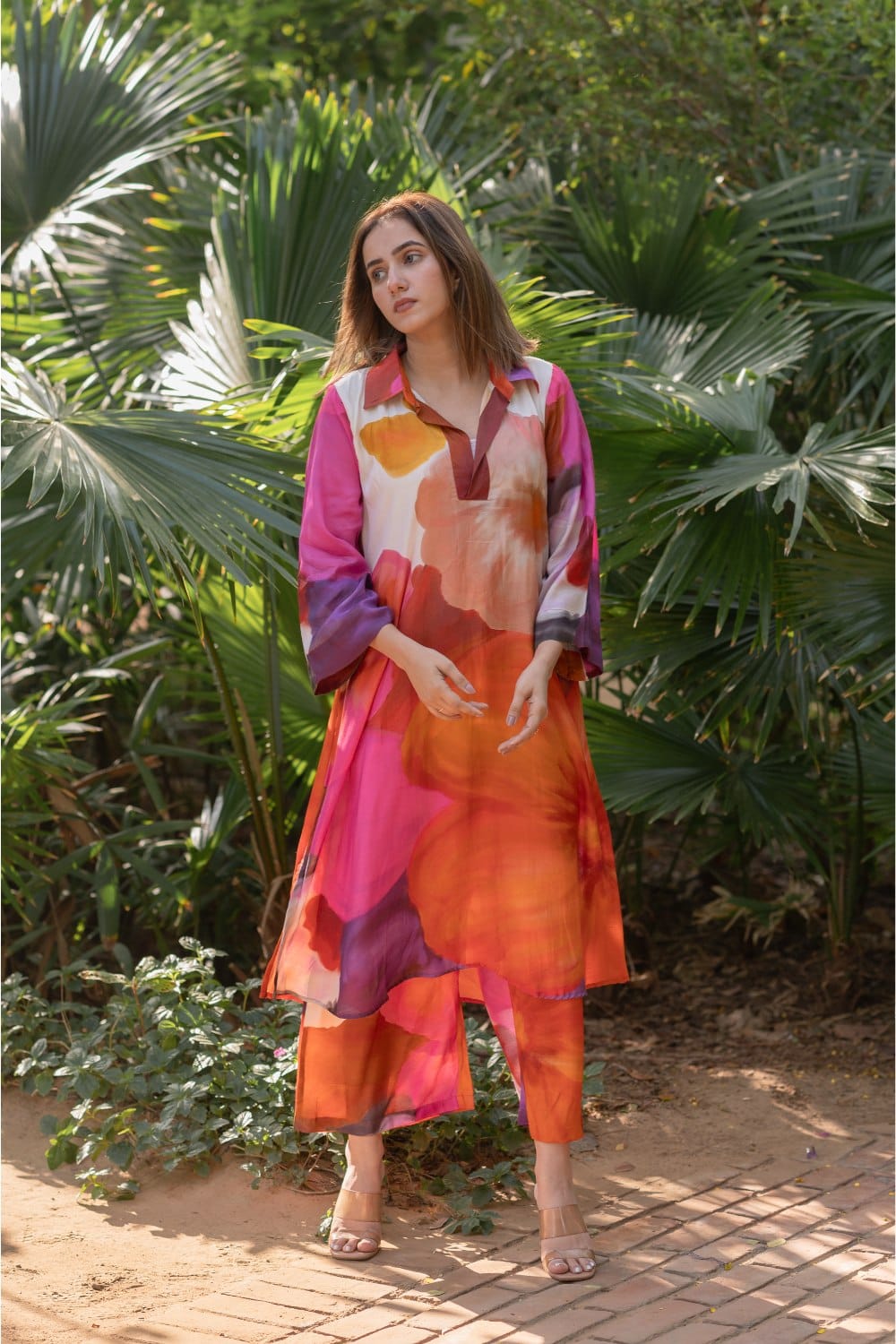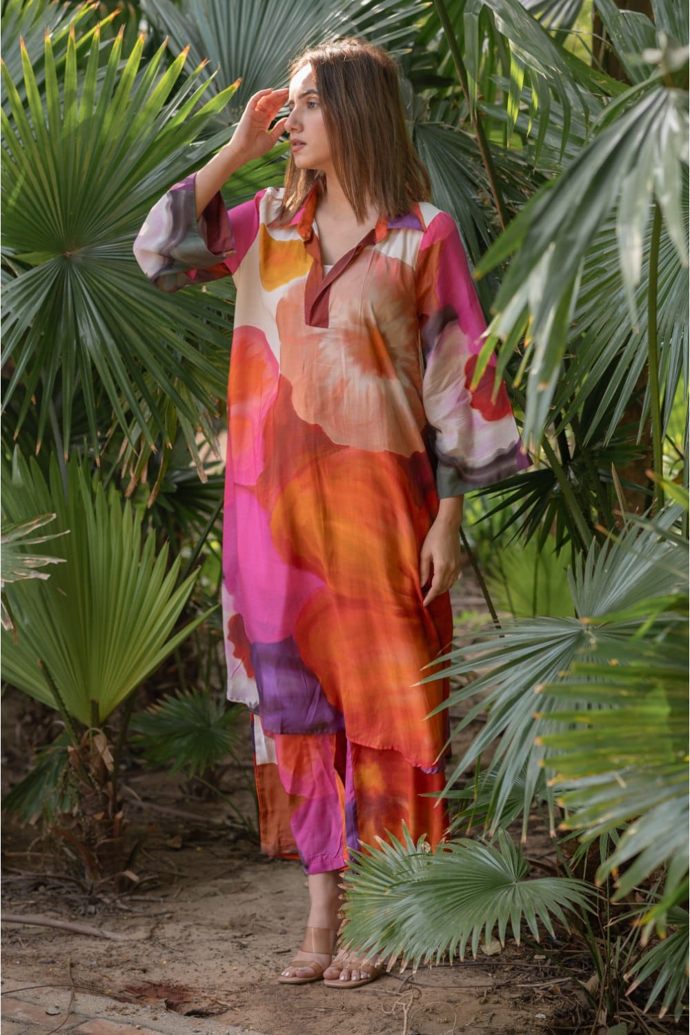 1. THIS SET INCLUDES KURTA AND PANTS. 2. MULTI COLOR KURTA WITH PANTS. B.SLEEVES - 3/4 SLEEVES 3. PANT - MULTICOLOR