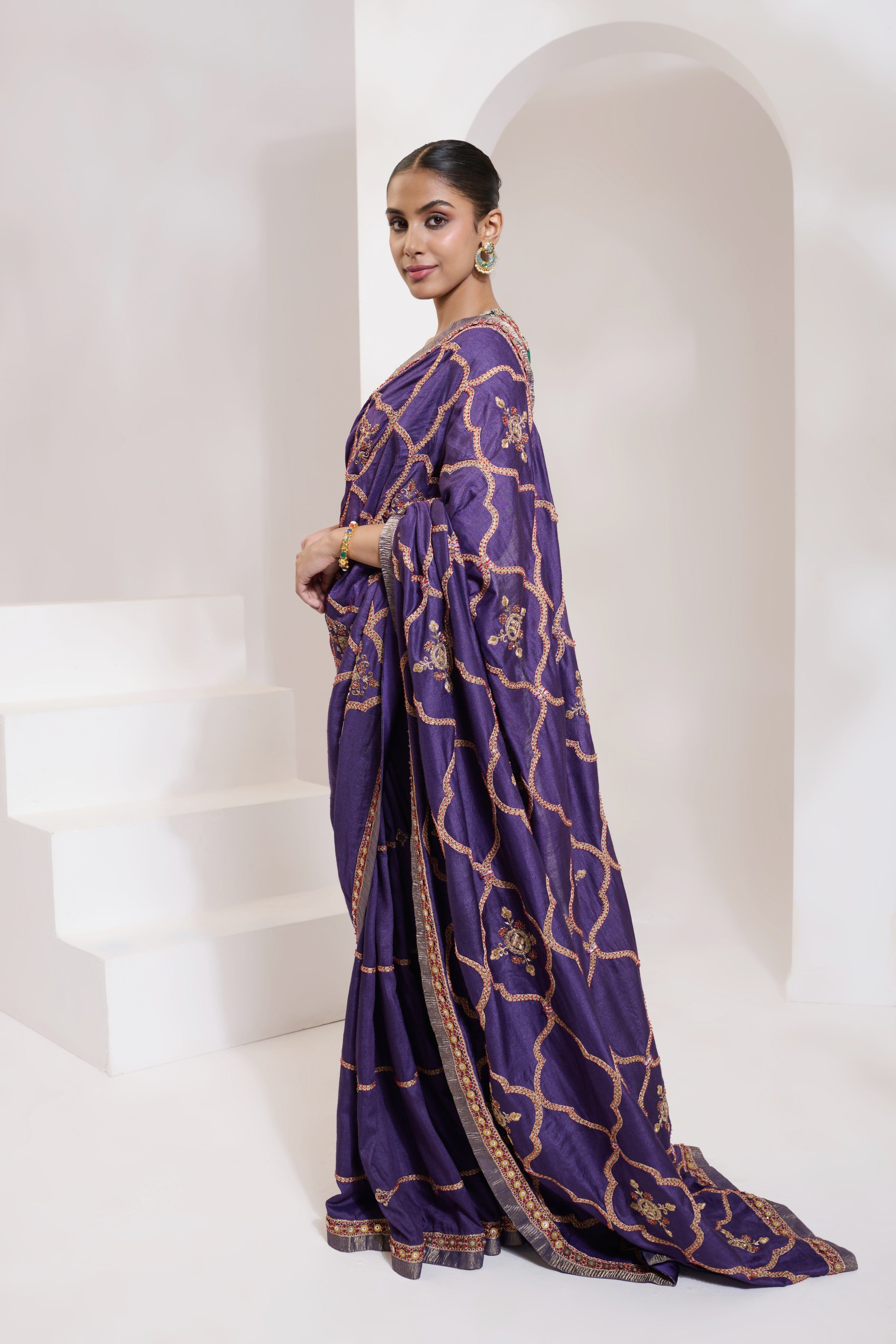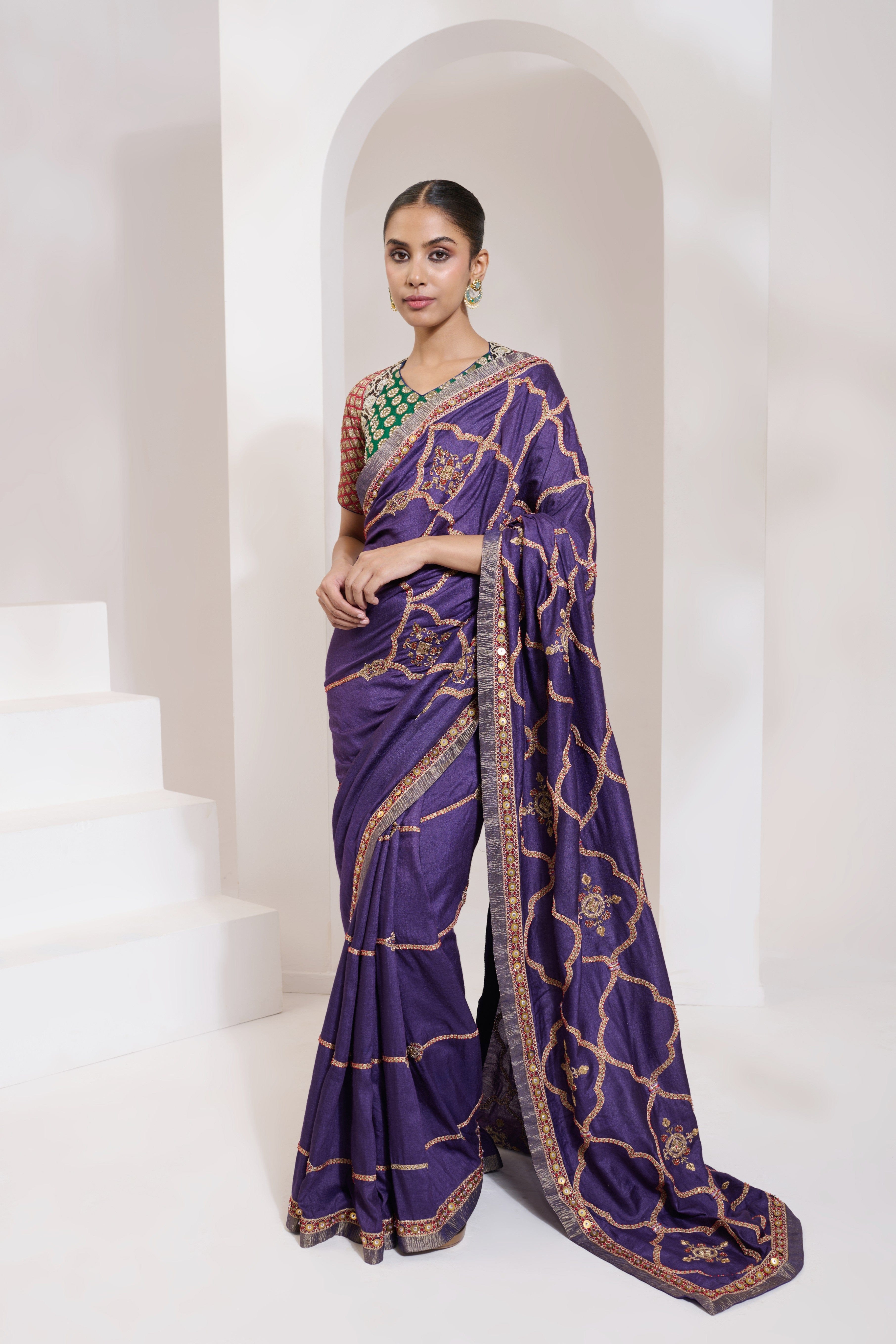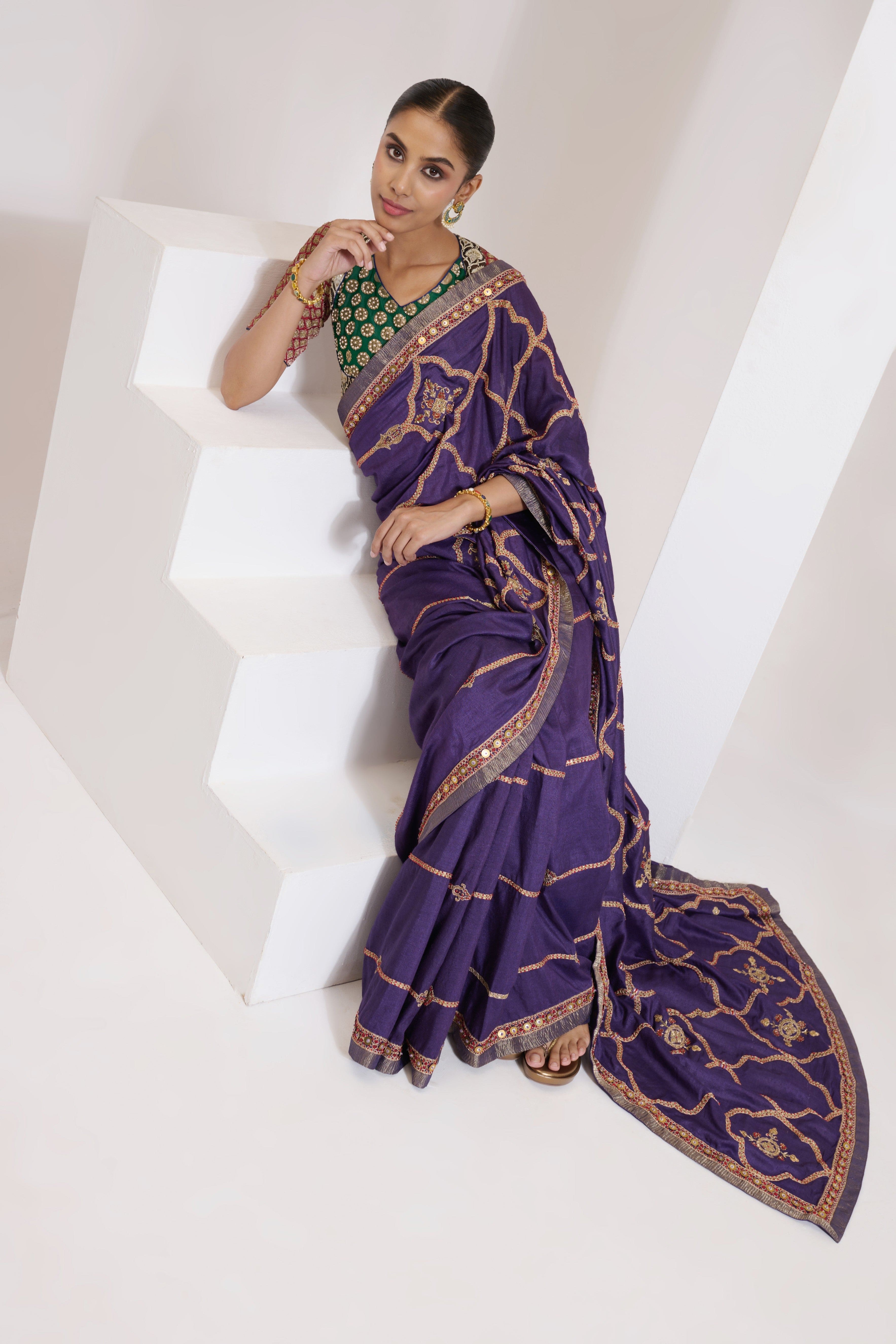Introducing the stunning moonga tussar saree that boasts a soft and luxurious texture that drapes beautifully over the body. The saree is accentuated by intricate zardosi and pita work. It comes with a matching unstitched blouse This product will be exclusively handcrafted for you, making the colour/texture/pattern slightly vary from the image shown, due to multiple artisan-led techniques and processes involved.