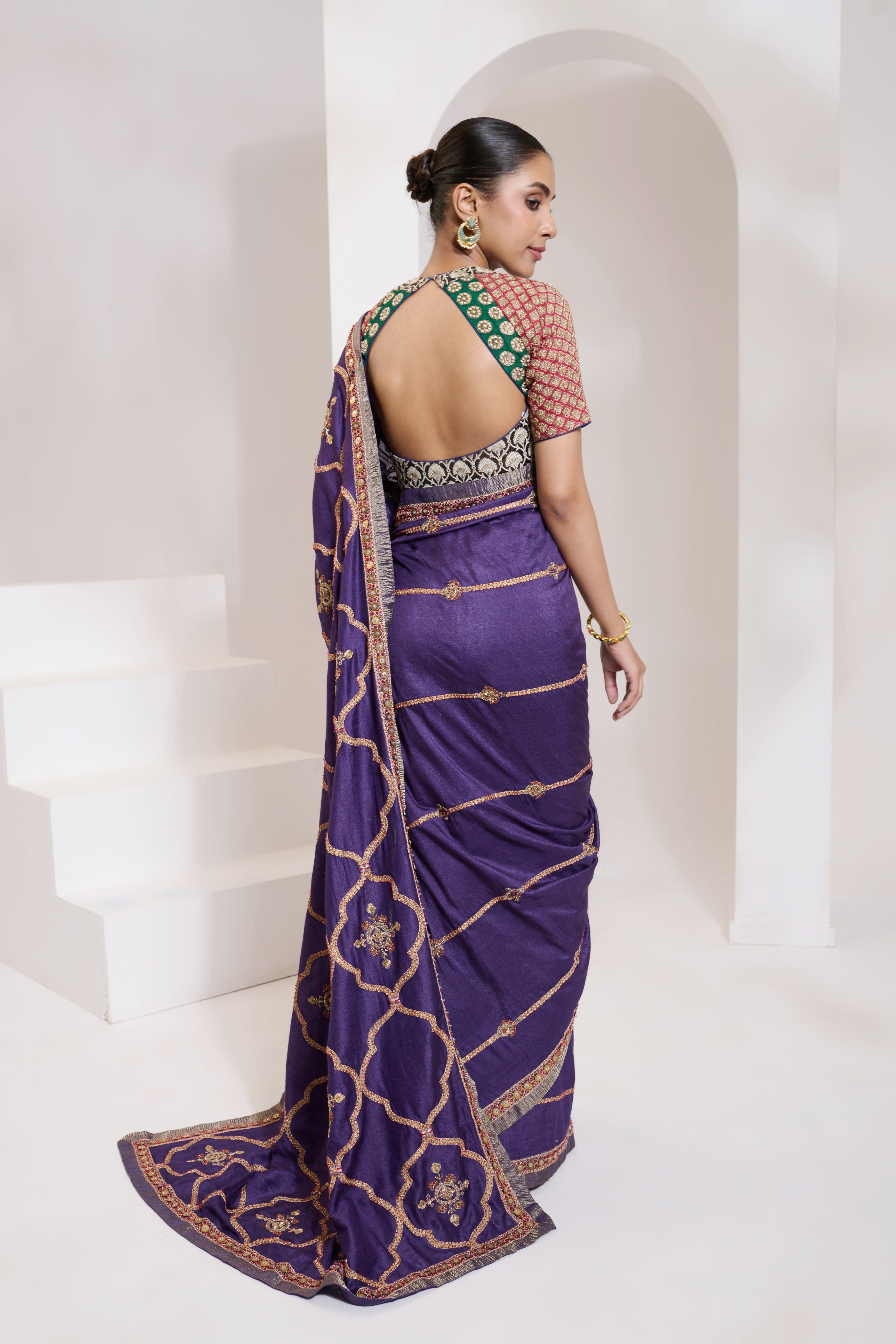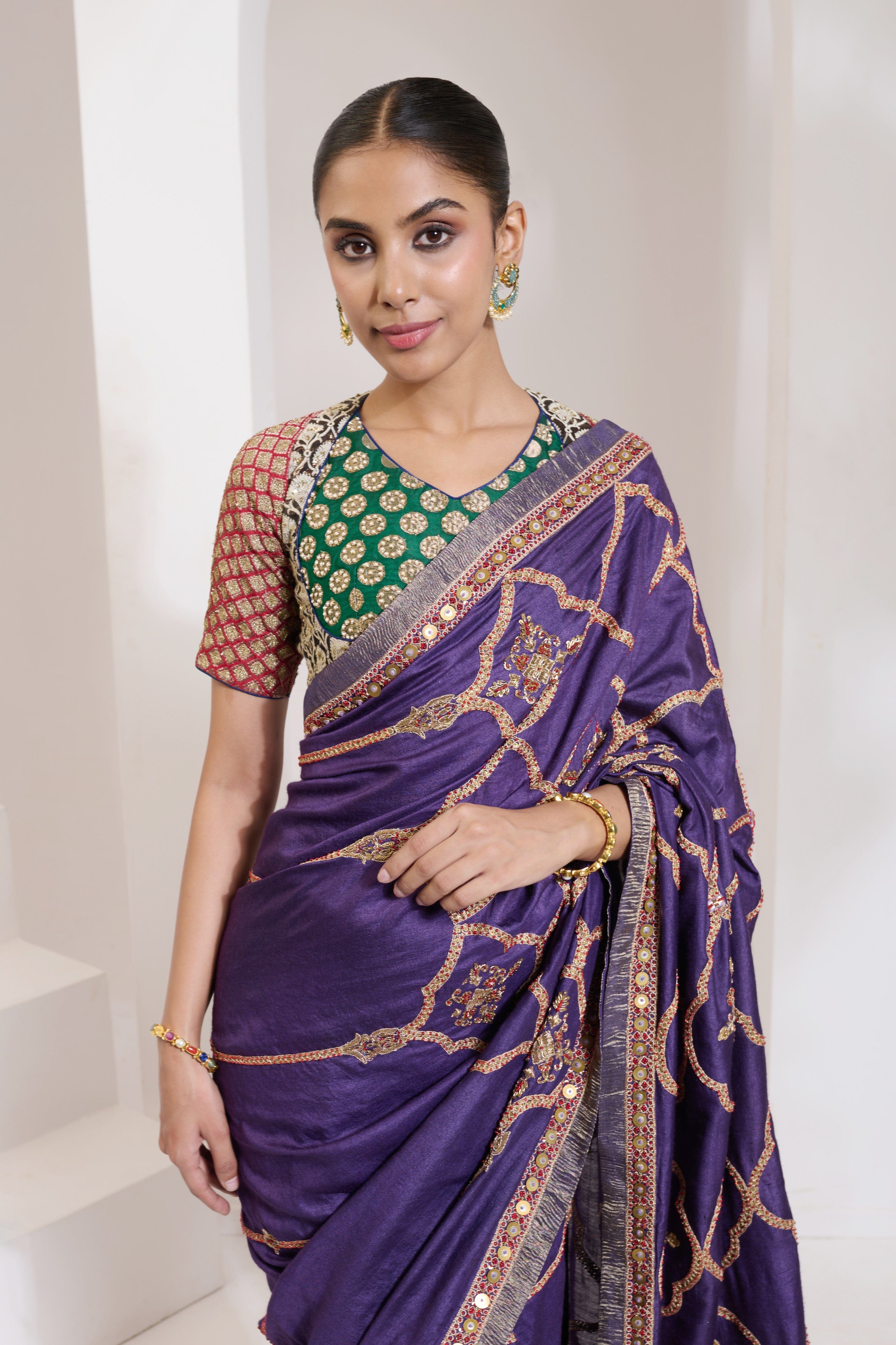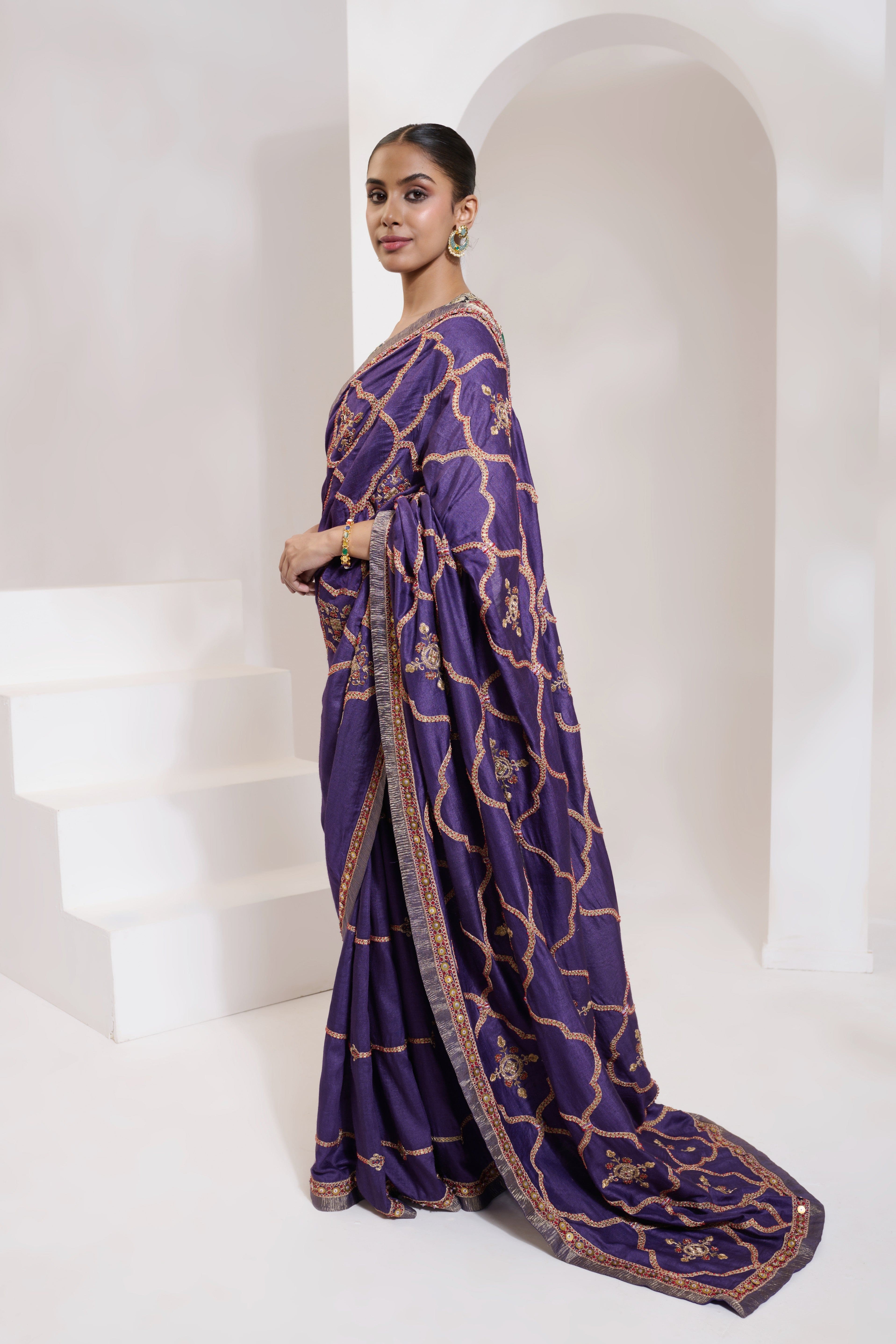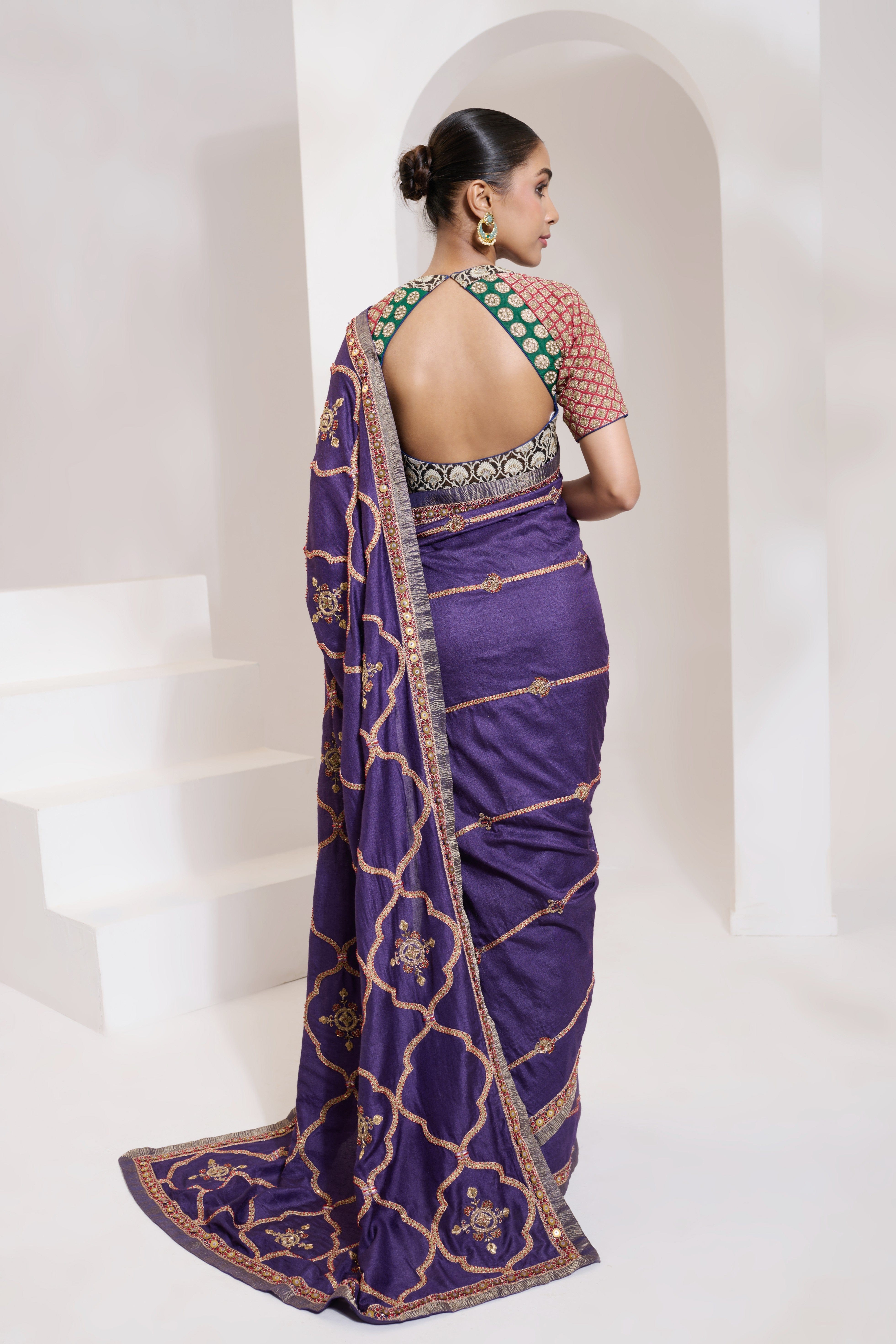 Introducing the stunning moonga tussar saree that boasts a soft and luxurious texture that drapes beautifully over the body. The saree is accentuated by intricate zardosi and pita work. It comes with a matching unstitched blouse This product will be exclusively handcrafted for you, making the colour/texture/pattern slightly vary from the image shown, due to multiple artisan-led techniques and processes involved.