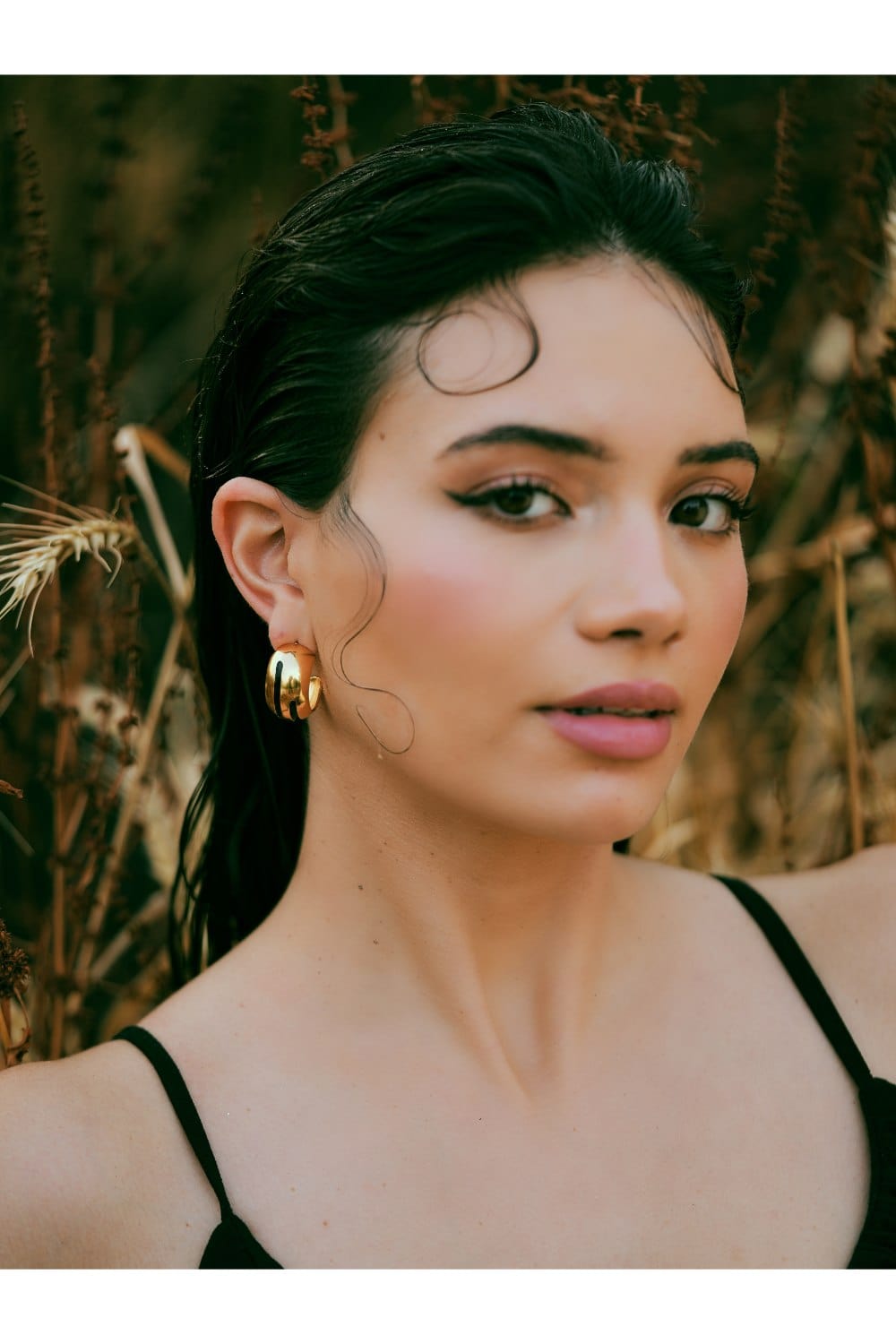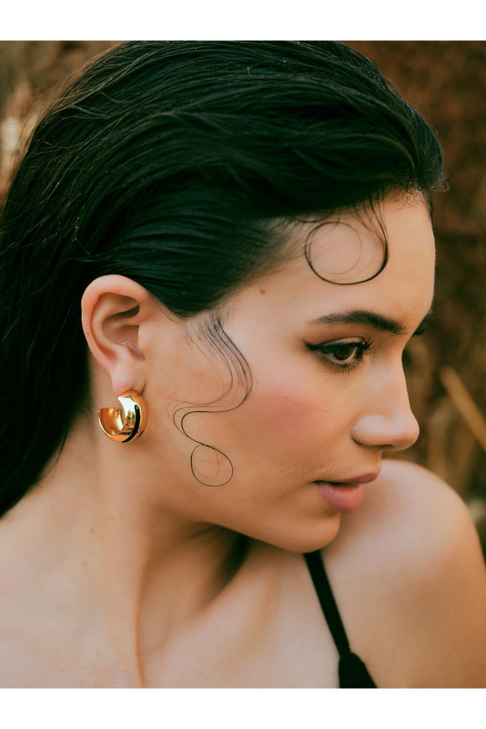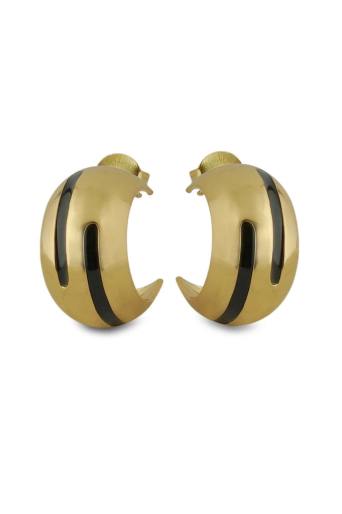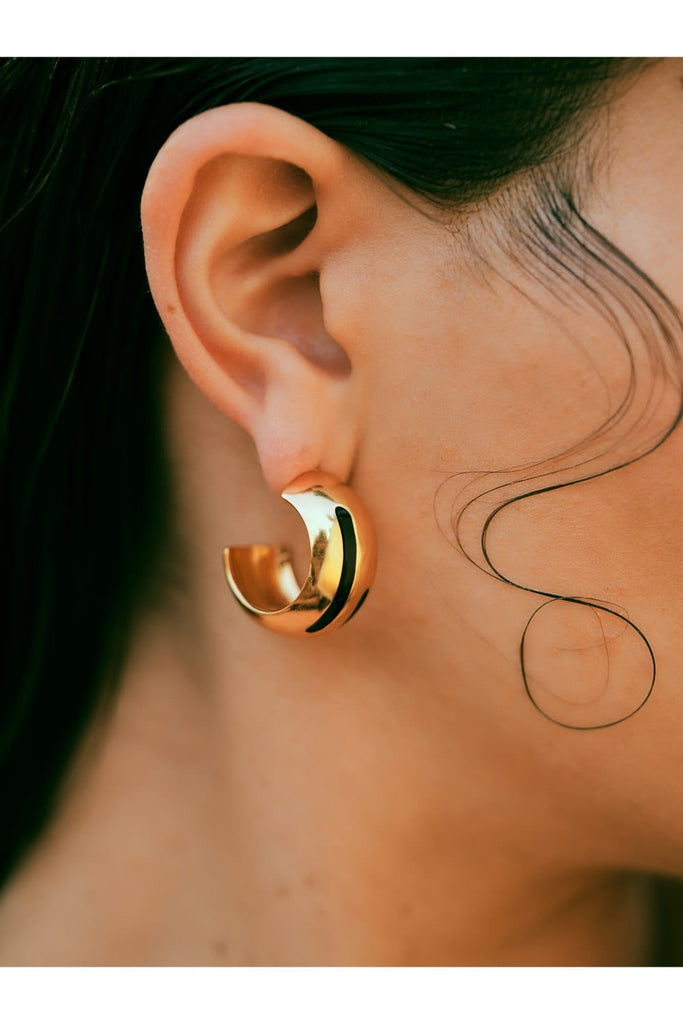 Luna Black Enamel Gold Hoops