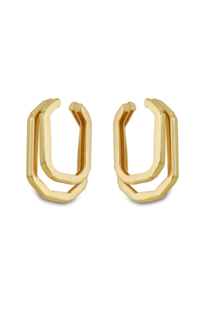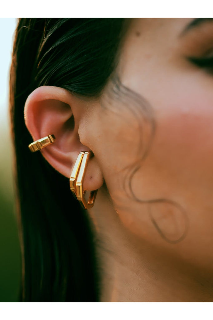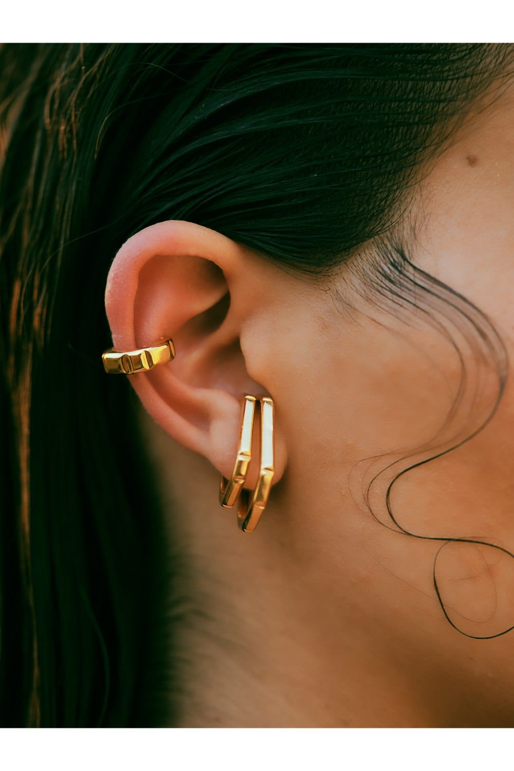 Sleek, sculptural, and effortlessly cool — these gold-toned ear cuffs and double hoop earrings bring a bold edge to minimalism. Featuring clean lines with a subtle hammered texture, they hug the ear with modern sophistication. No piercings? No problem — the ear cuff slips on easily for a stacked look that’s both fierce and versatile. Whether worn solo or layered, this set is your go-to for elevating everyday style with a touch of contemporary glamour.