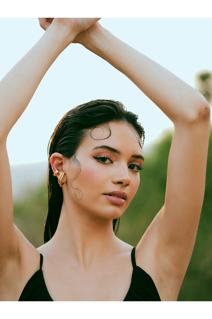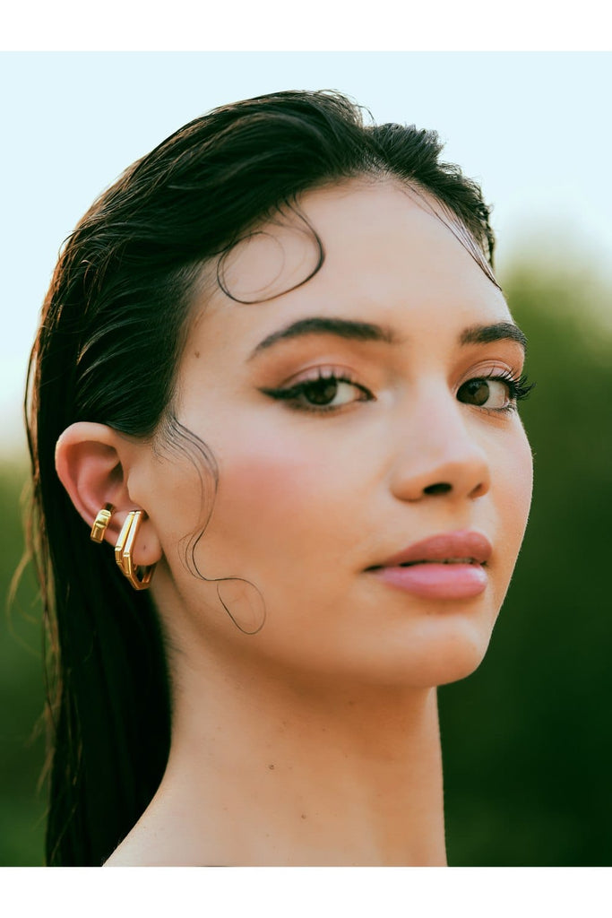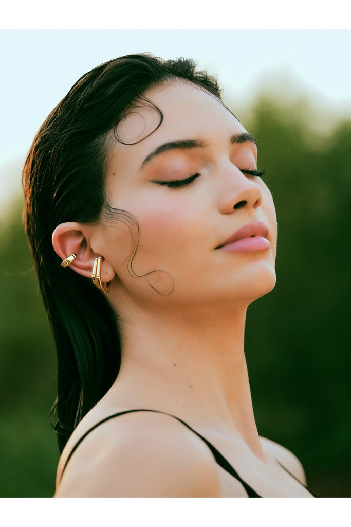 Sleek, sculptural, and effortlessly cool — these gold-toned ear cuffs and double hoop earrings bring a bold edge to minimalism. Featuring clean lines with a subtle hammered texture, they hug the ear with modern sophistication. No piercings? No problem — the ear cuff slips on easily for a stacked look that’s both fierce and versatile. Whether worn solo or layered, this set is your go-to for elevating everyday style with a touch of contemporary glamour.